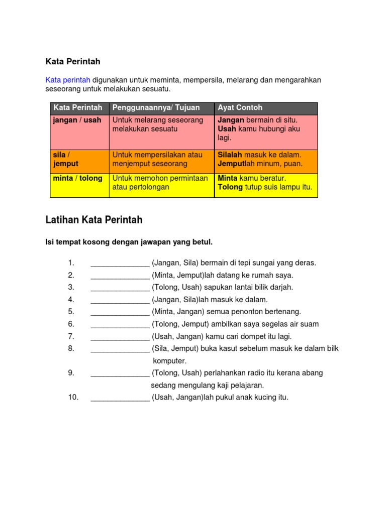 Kata Perintah Tahun 3 Latihan Wallpaper